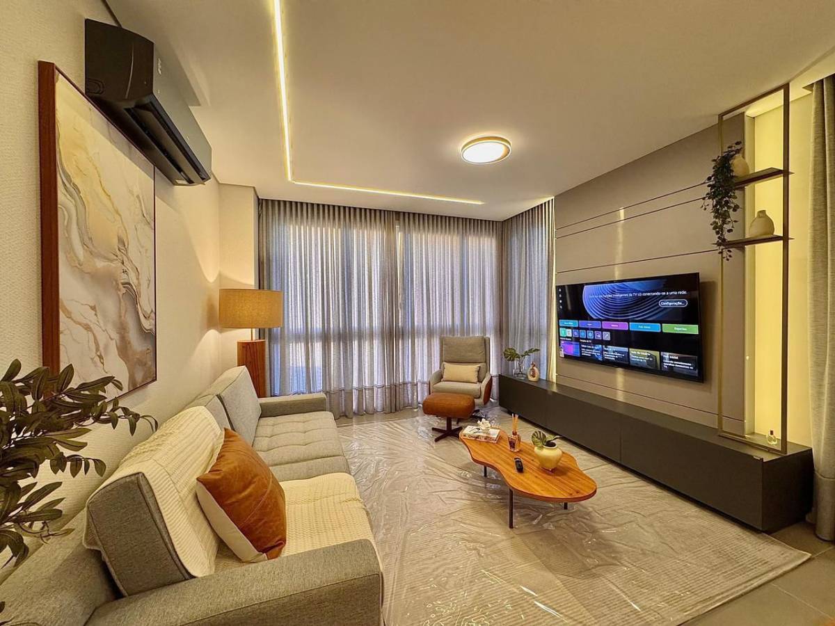 Luxuoso exemplar de apartamento, mobiliado e decorado, 3 dormitórios sendo 01 suíte, banheiro social + lavabo, área de serviço separada, cozinha americana c/churrasqueira, ar condicionado instalado, box duplo de estacionamento, esquadrias pvc premium, piso aquecido. Edifício 15 Andares, Rooftop, Pub, espaço Zen com lareira, piscina aquecida fitness, salão de festas com vista para o mar, 2 elevadores, carregador para Carro elétrico.
